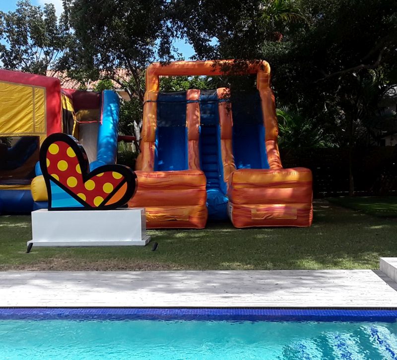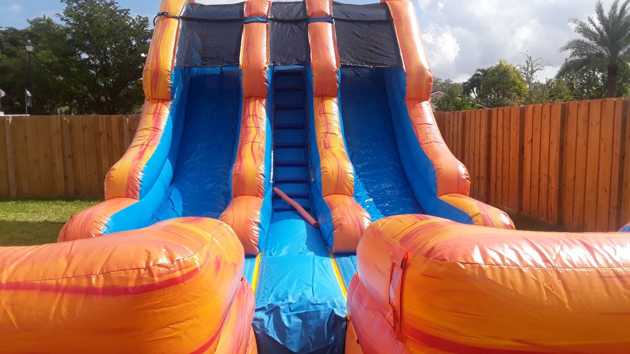 Double lane slides are fun for those who are in a little competitive mood. Challenge your friends and family to jump into the slides side by side, who gets to the pool first wins. Our water slide is an incredibly attractive water slide that will make friends and family say WOW! This unique design definitely makes it a very popular slide in Miami during our very hot weather.
