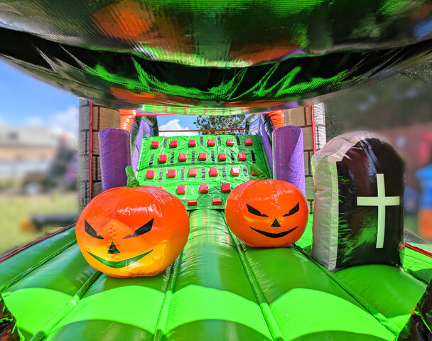Get ready for a spooky adventure with our 23ft Halloween Obstacle Course with Slide! This inflatable obstacle course is perfect for Halloween parties, carnivals, and events. It features a 23ft long obstacle including, rock climbing wall and slide. Participants will have to navigate through the obstacles before reaching the thrilling slide at the end. The slide is a whopping 23ft long, providing an exhilarating experience for all ages. The Halloween theme adds an extra level of excitement and is sure to delight guests. Don't miss out on the fun - order our 23ft Halloween Obstacle Course with Slide today!